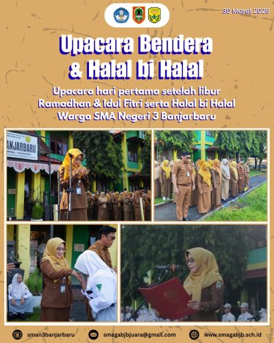 SMAN 3 Banjarbaru melaksanakan upacara bendera pada hari pertama masuk sekolah setelah libur Ramadhan dan Idul Fitri dengan penuh khidmat. Kegiatan ini menjadi momentum penting untuk menumbuhkan kembali semangat belajar serta meningkatkan kedisiplinan seluruh warga sekolah.