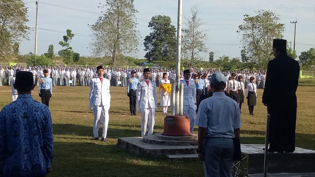Inilah detik – detik pengibaran bendera Merah Putih oleh Pasukan Pengibar Bendera (Paskibra) SMA Negeri 3 Banjarbaru pada Upacara Peringatan hari Proklamasi Kemerdekaan Republik Indonesia Ke-71 berjalan dengan tertib dan aman.